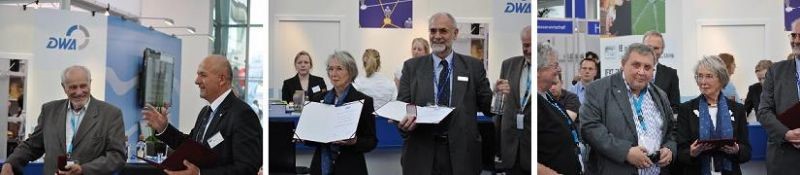 Kovács Károly, cégünk ügyvezető igazgatója és egyben a MaSzeSz elnöke, a szövetség évente kiosztásra kerülő Aranyfedlap díját a DWA két kiemelkedő munkatársának, Dipl.-Ing. Rüdiger Heidebrecht-nek, a DWA Továbbképzés és Nemzetközi Kapcsolatok osztályvezetőjének és Dipl.-Psych. Gabriele Martens-nek, a DWA Nemzetközi Kapcsolatok csoportvezetőjének nyújtotta át. Az díjazottak a szövetségek közötti együttműködés során végzett áldozatos és magas színvonalú munkájukért vehették át a kitüntetést.